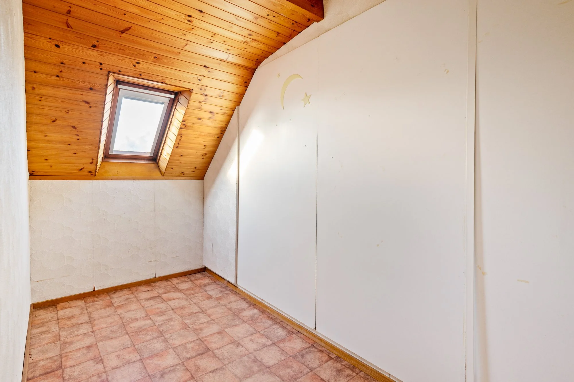 Deze op te frissen woning bevindt zich in een zeer rustige éénrichtingsstraat, op wandelafstand van het centrum van Wijnegem en diverse scholen. De woning biedt een ruime inkomhal die toegang geeft tot een lichtrijke leefruimte van 41 m² met aansluitend een leefkeuken. De badkamer is uitgerust met een ligbad en dubbele wastafel, en er is een afzonderlijk toilet aanwezig. Op de eerste verdieping bevinden zich vier volwaardige slaapkamers, terwijl de niet-ingerichte zolder nog extra mogelijkheden biedt. Verder is er een kelder aanwezig die extra bergruimte voorziet. Achteraan beschikt de woning over een west-gerichte tuin van ongeveer 235 m² die veel privacy garandeert. De woning combineert een zeer rustige ligging met de nabijheid van het centrum en scholen, een ruime woonoppervlakte, vier slaapkamers en een grote zonnige tuin, waardoor ze veel potentieel biedt voor renovatie naar eigen smaak.